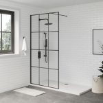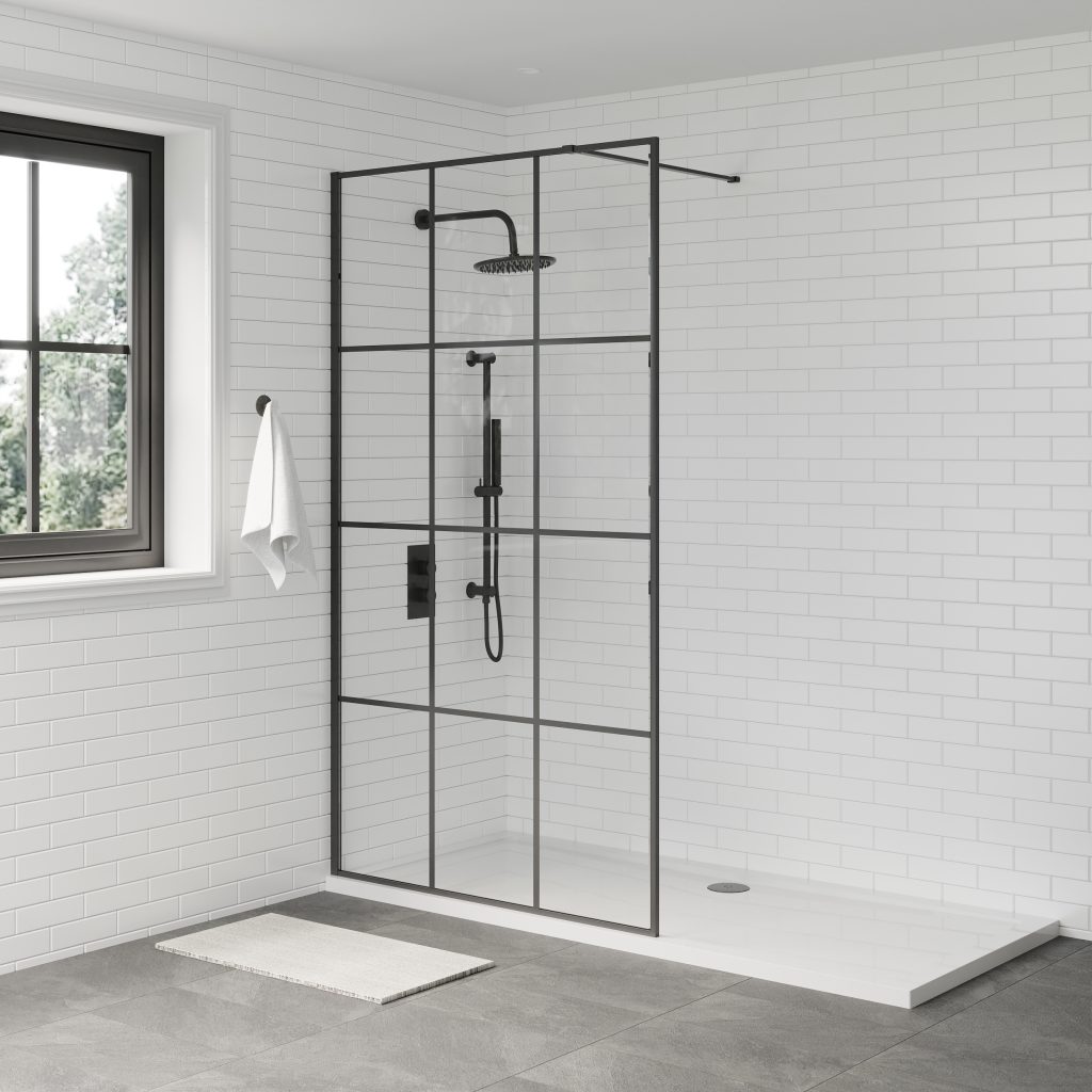 Litchfield 8mm Black Grid Wetroom Glass Panel – Easy-Clean Walk-In Shower Screen