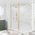 Add a premium designer finish to your bathroom with the Litchfield 8mm Brushed Brass Wetroom Glass Panel with Hinged Flipper, created for modern walk-in showers where style and practicality matter. This elegant wetroom screen delivers a clean, minimalist look while offering enhanced splash protection for everyday showering.